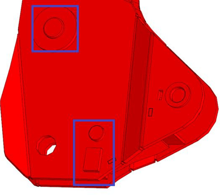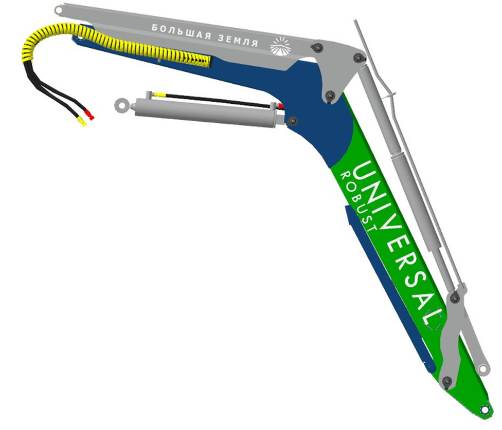 Накладка увеличена в два раза, что позволило укрепить соединения ног стрелы и уменьшить риск повреждений при интенсивной работе с тяжелыми грузами. -